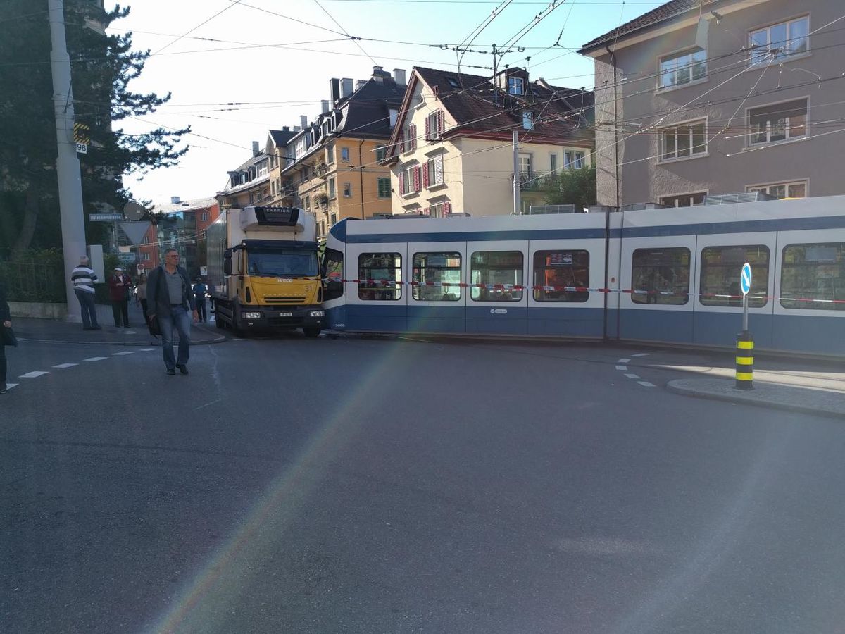 hegibachplatz zurich betonmischer prallt in 11er tram 20 minuten